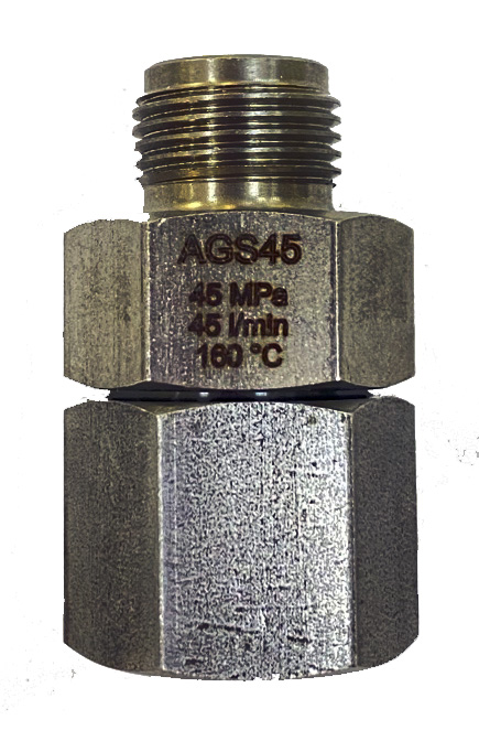 Поворотная муфта AGS45, 450bar, 45l/min, 160°C, вход-3/8внут, выход-3/8внеш, нерж. сталь МТМ
