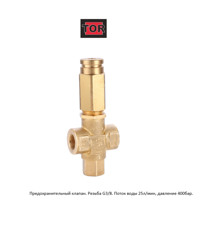 Предохранительный клапан TOR резьба G3/8. поток воды 25л/мин, давление 400бар.