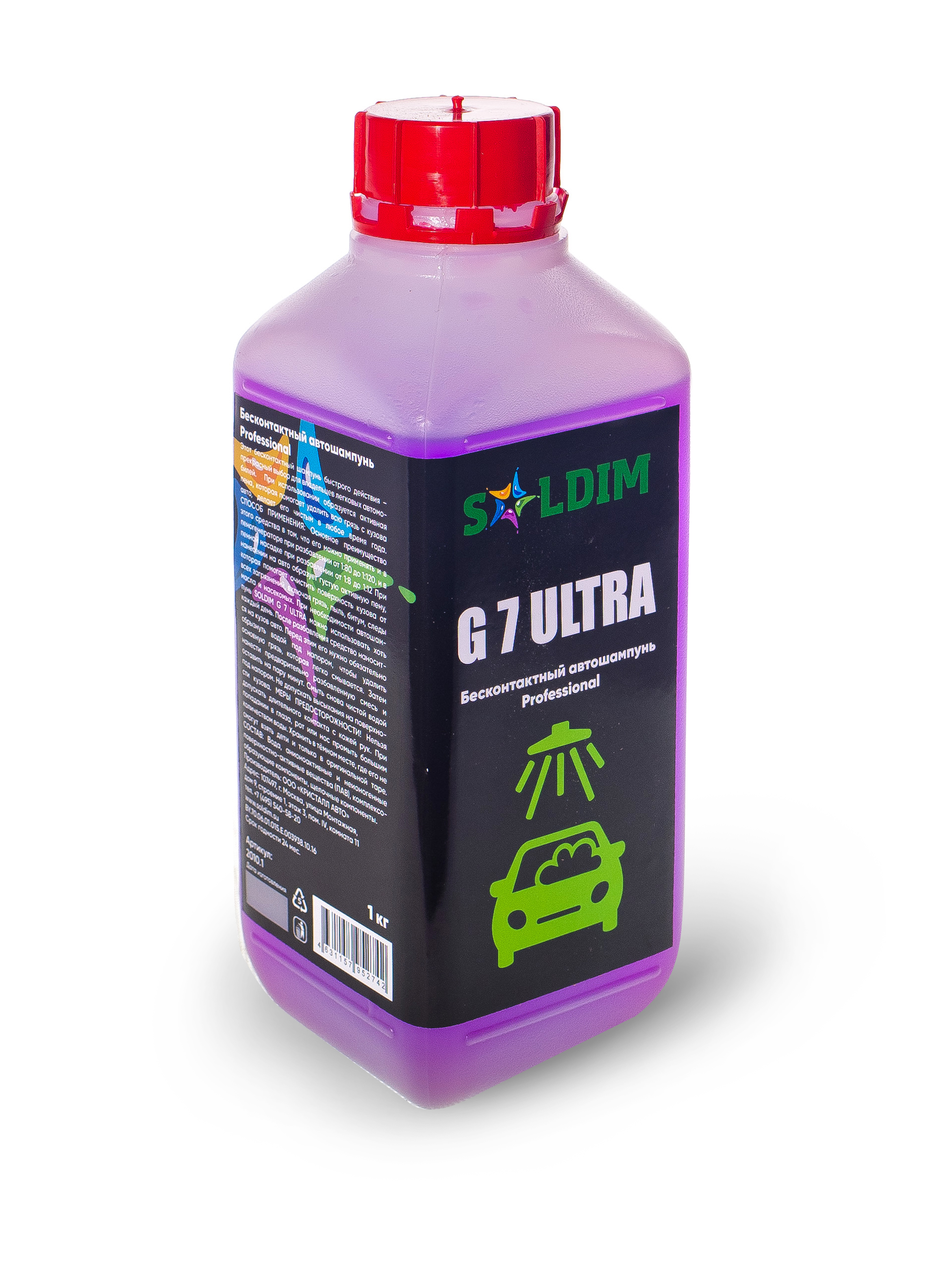 G 7 ULTRA SOLDIM - это профессиональный бесконтактный автошампунь, специально разработанный для глубокой очистки кузова автомобиля от различных загрязнений. Он образует активную пену, которая эффективно справляется с пылью, грязью, следами насекомых и другими загрязнителями, не повреждая лакокрасочное покрытие.