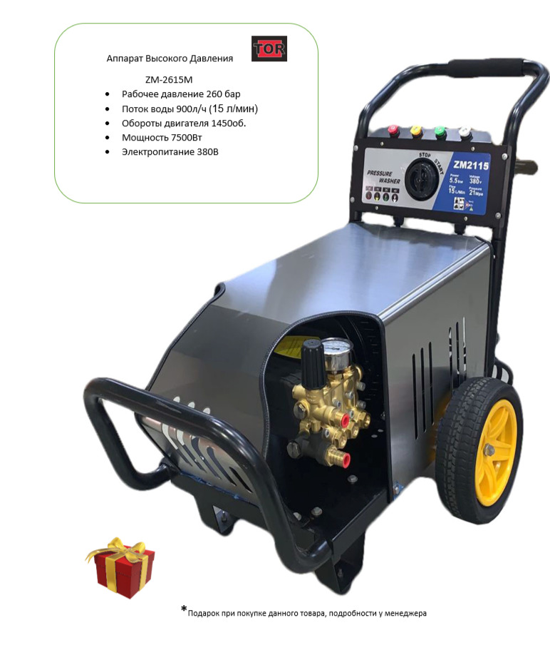 TOR Мойка высокого давления ZM-2615M, 260 бар, 900 л/ч, 7500 Вт, 380 В, 1450 об/мин