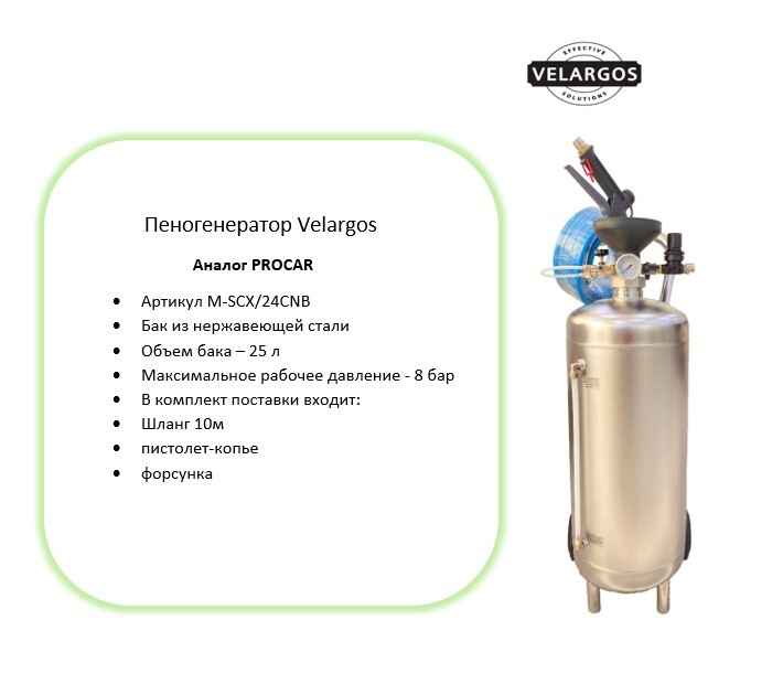 Пеногенератор Velargos M-SCX/24CNB — 25 литров, бак из нержавеющей стали, аналог PROCAR