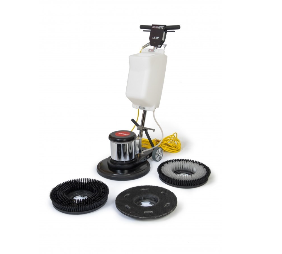 Bennett SPX-170N — профессиональная роторная машина для глубокой чистки, полировки и нанесения уходовых средств на твёрдые напольные покрытия. Модель оснащена мощным двигателем 1500 Вт и работает на скорости 175 об/мин, что обеспечивает стабильную и эффективную обработку различных поверхностей. Рабочая ширина щетки составляет 430 мм, что позволяет достичь производительности до 840 м²/ч.