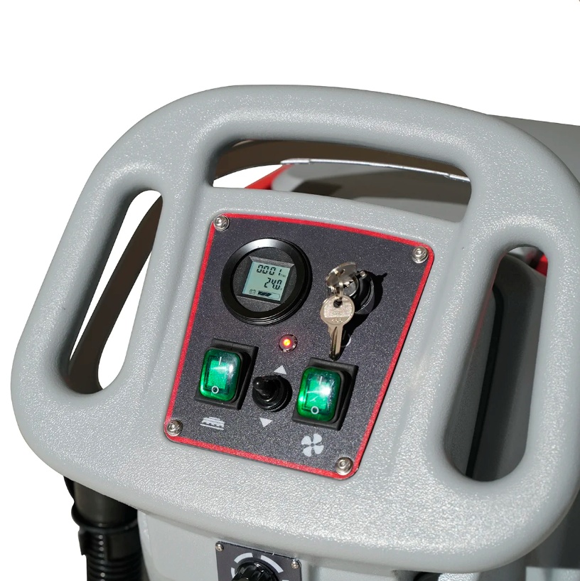 EVOLine SDB530T — самоходная аккумуляторная поломоечная машина, предназначенная для уборки средних и крупных коммерческих помещений. Благодаря рабочей ширине 530 мм и производительности до 2500 м²/ч модель эффективно справляется с очисткой складов, ТЦ, цехов и других объектов. Машина проста в управлении, оснащена приводом хода и системой точной подачи моющего раствора, которая срабатывает только при работе щетки. Модель поставляется без аккумуляторов и зарядного устройства, что позволяет выбрать АКБ под нужные задачи и бюджет.